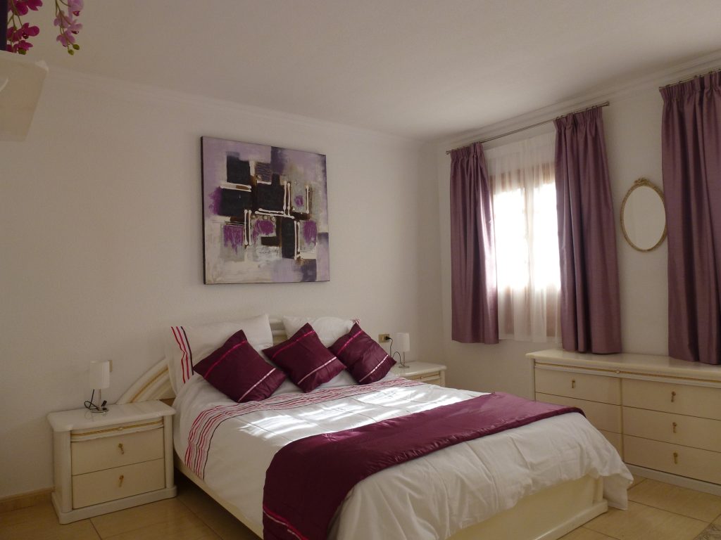 The bedroom has a king size bed, two fitted wardrobes, a chest of drawers and safe. The large patio is fully furnished and has a sun awning. It gets sun from lunch time until sun set.
