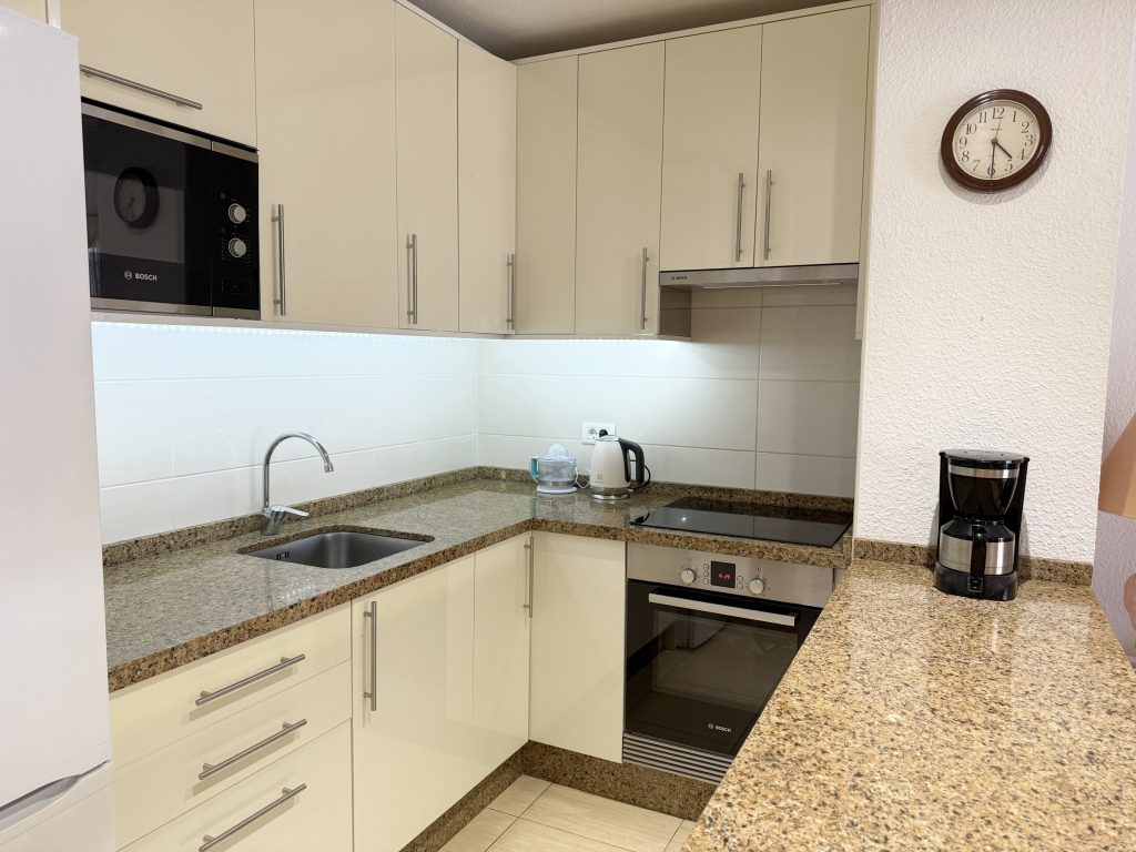 The apartment is being sold fully furnished, so you could be enjoying a holiday in the sun, as soon as the sale is completed. It is beautifully presented with a refurbished kitchen, granite work surfaces, oven, hob, microwave and fridge freezer. A modern, fully tiled shower room, with large walk in shower is situated at the entrance to the apartment. A washing machine is fitted in the boiler cupboard.