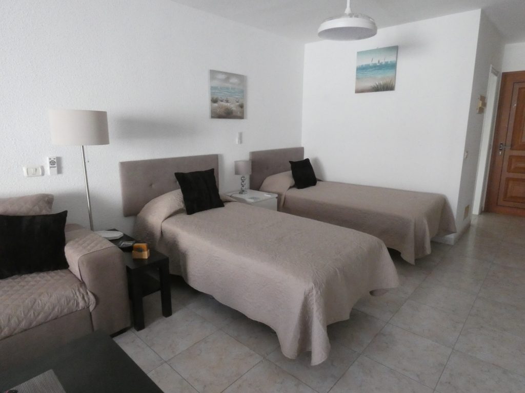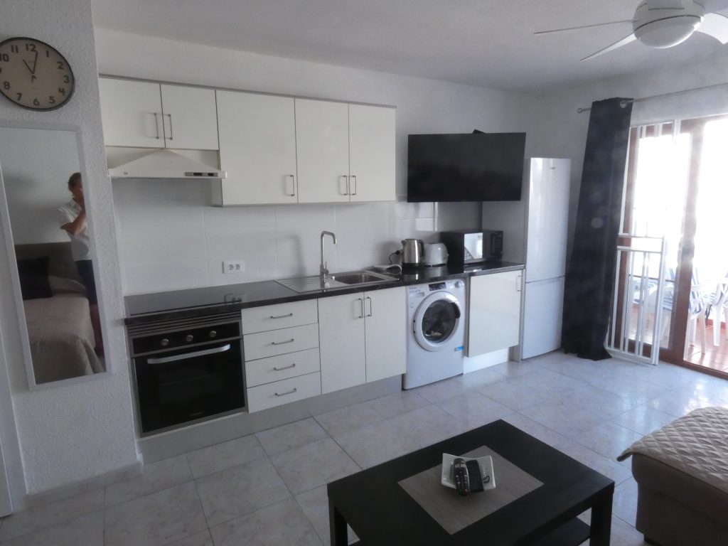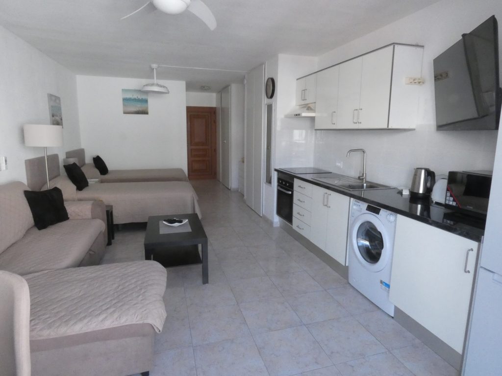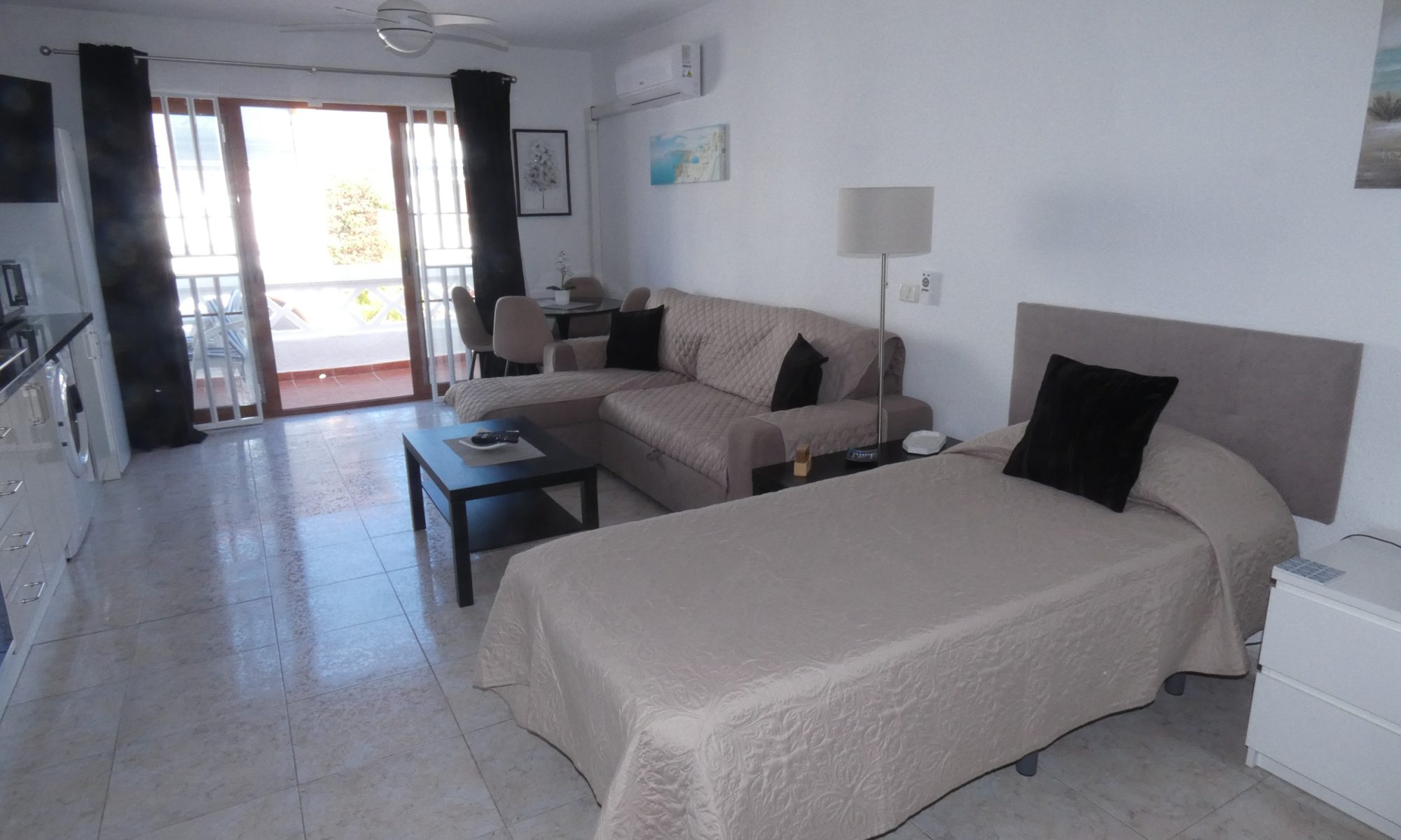 New to our books, this first floor studio apartment which overlooks the heated (winter time) swimming pool is beautifully presented. As you enter the apartment there is a fully tiled shower room, with corner shower cubile and floating vanity unit.